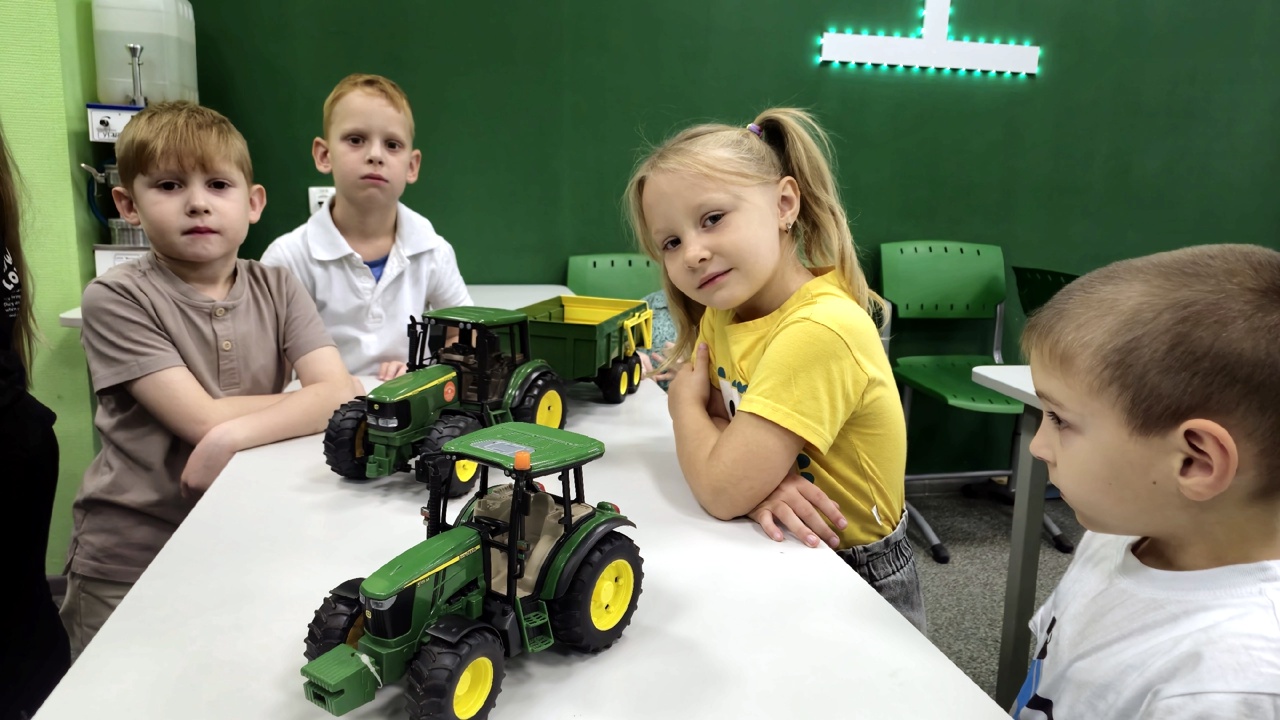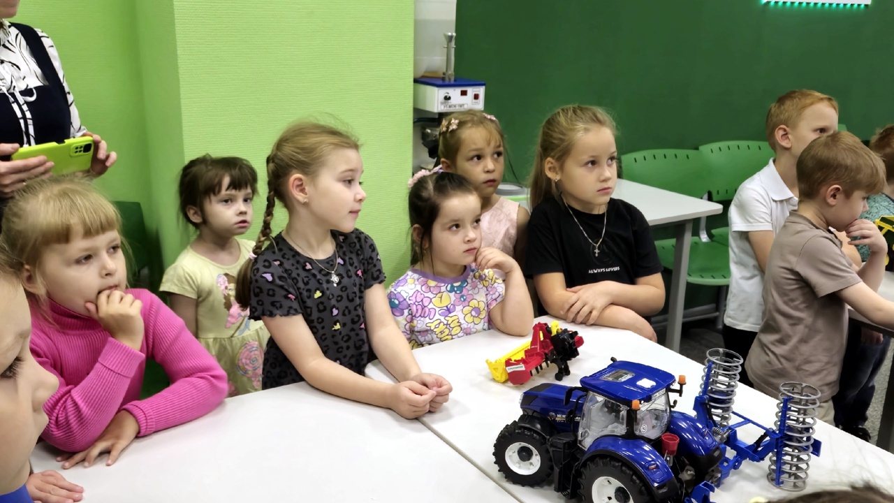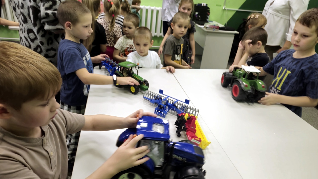 Первым делом юные гости познакомились с сельскохозяйственной техникой и оборудованием.